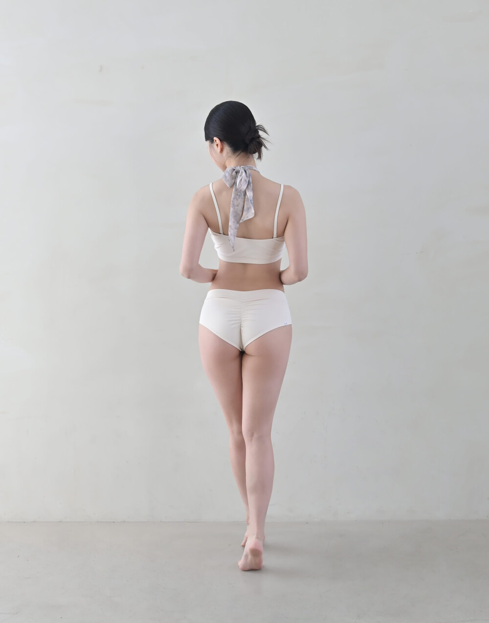 홀터넥 디자인 특유의 뒷목 당김을 방지했습니다.