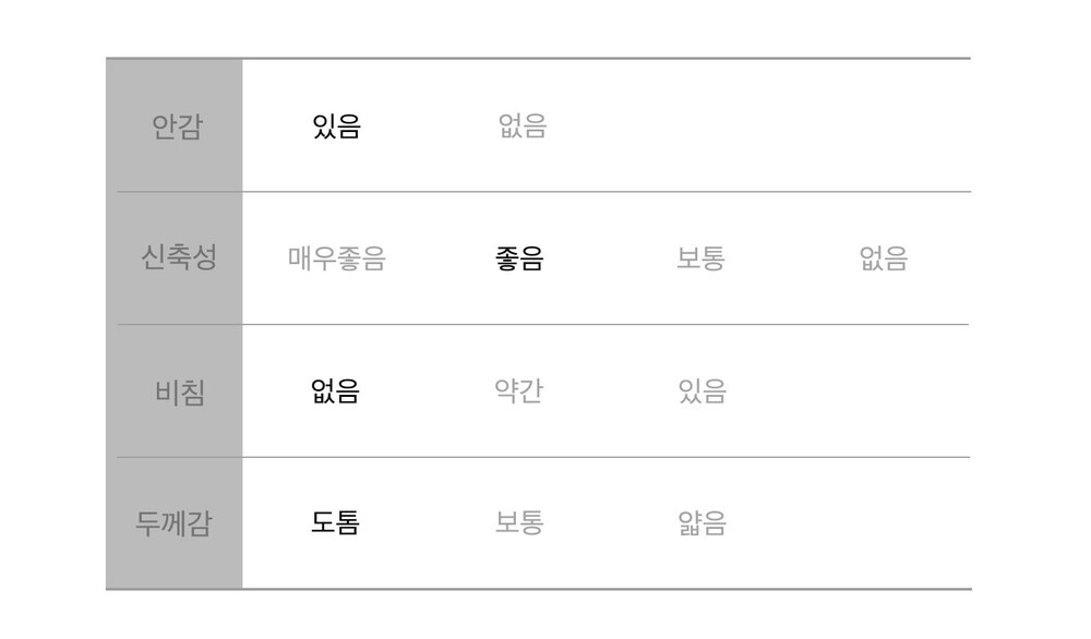 스판 함유로 신축성도 좋아 편안함까지 잡았고,