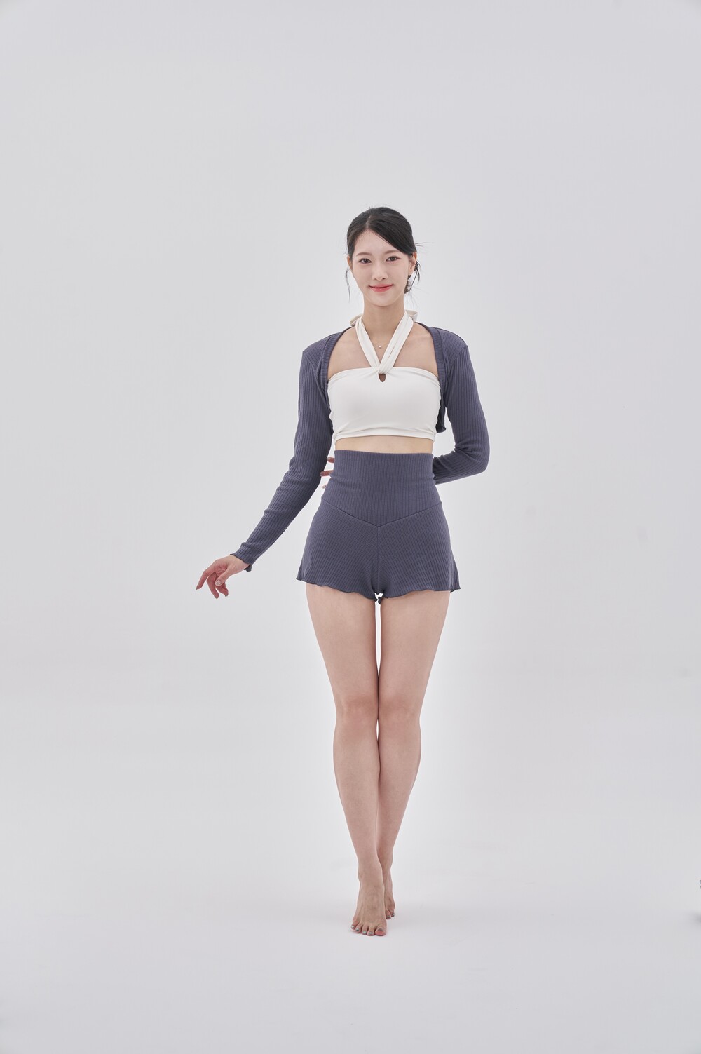 ▽'모네 홀터탑(화이트-핑크)', '울니트 레그워머(크림)'와 매치