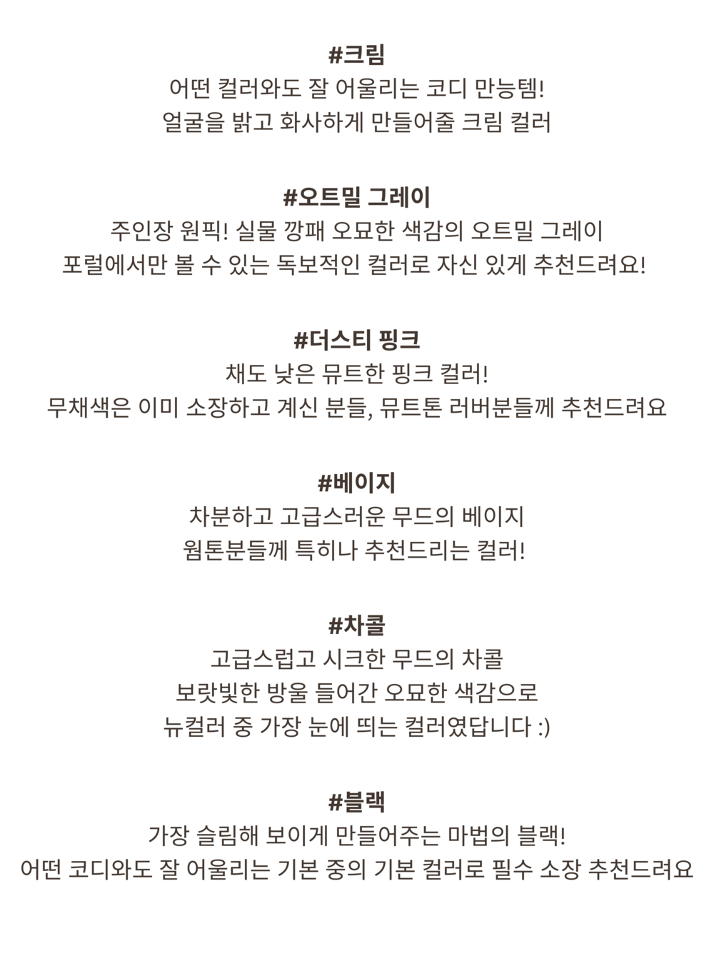 크림, 베이지, 차콜 컬러가 새롭게 출시되었습니다.
